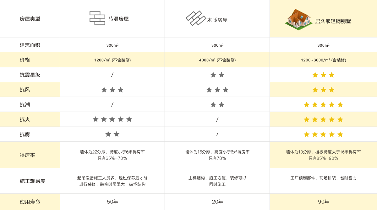 居久家房屋輕鋼房屋體系,抗震能力達9級,抗風能力達13級。